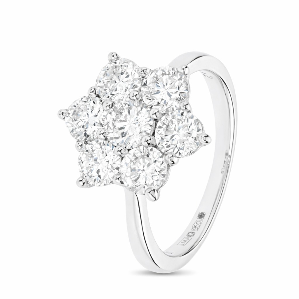 This diamond daisy-shaped cluster ring, valued at £11,625.00, offers lasting beauty and investment potential. Its high-quality diamonds and expert craftsmanship make this ring timeless and destined to remain a treasured symbol of elegance for generations to come.