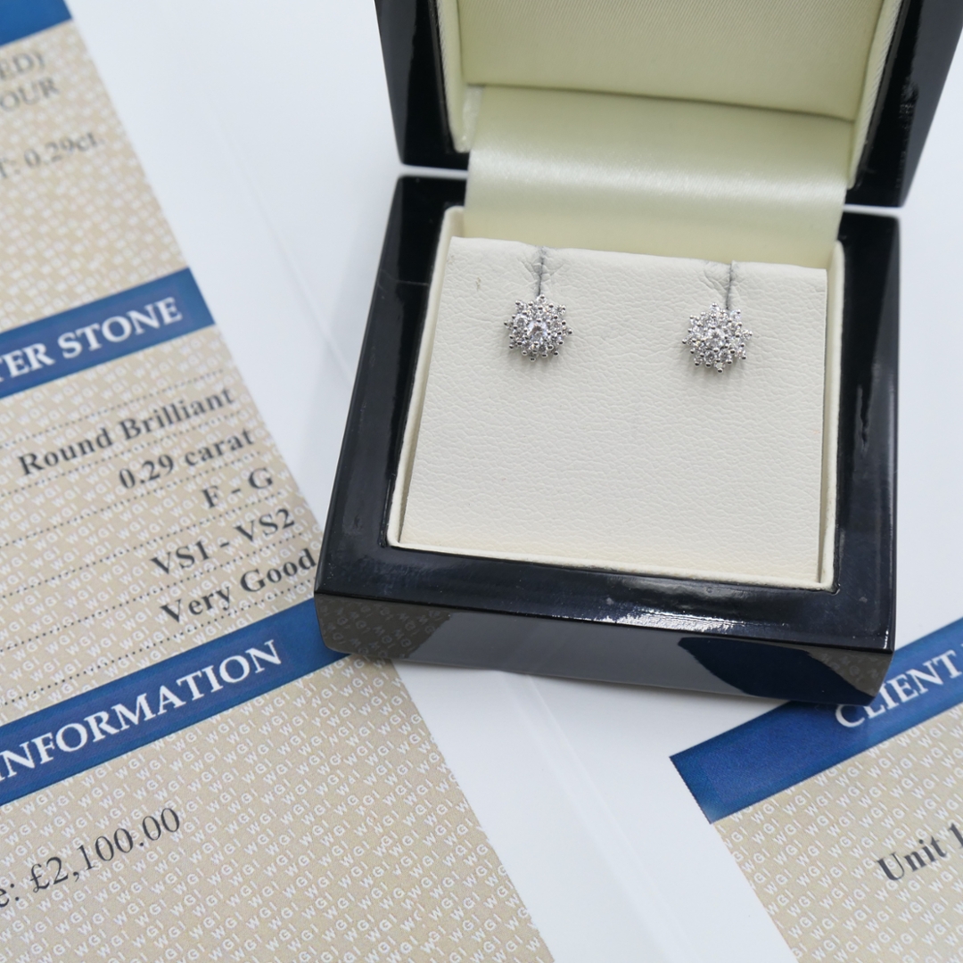 With a total diamond weight of 0.29ct, the diamonds are of exceptional quality, graded VS1-VS2 for clarity and F-G for colour. These natural diamonds, formed over billions of years, are treasured for their rarity and intrinsic value. Unlike synthetic counterparts, natural diamonds carry a legacy of enduring beauty and increasing worth, making these earrings a meaningful investment and a luxurious accessory.