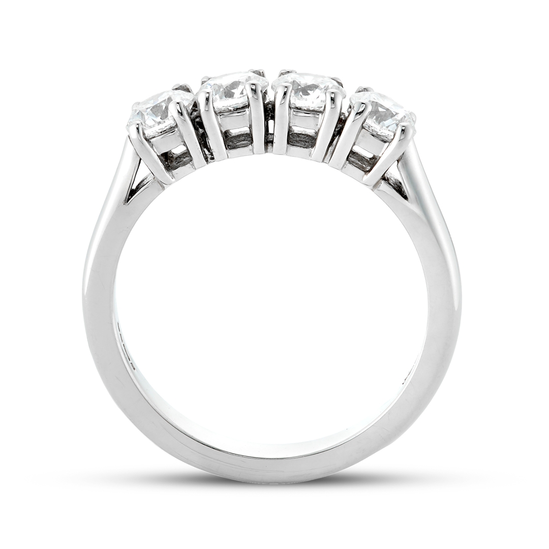A brand-new, unused, certified natural diamond four-stone eternity ring, with four brilliant-cut diamonds, set in platinum.