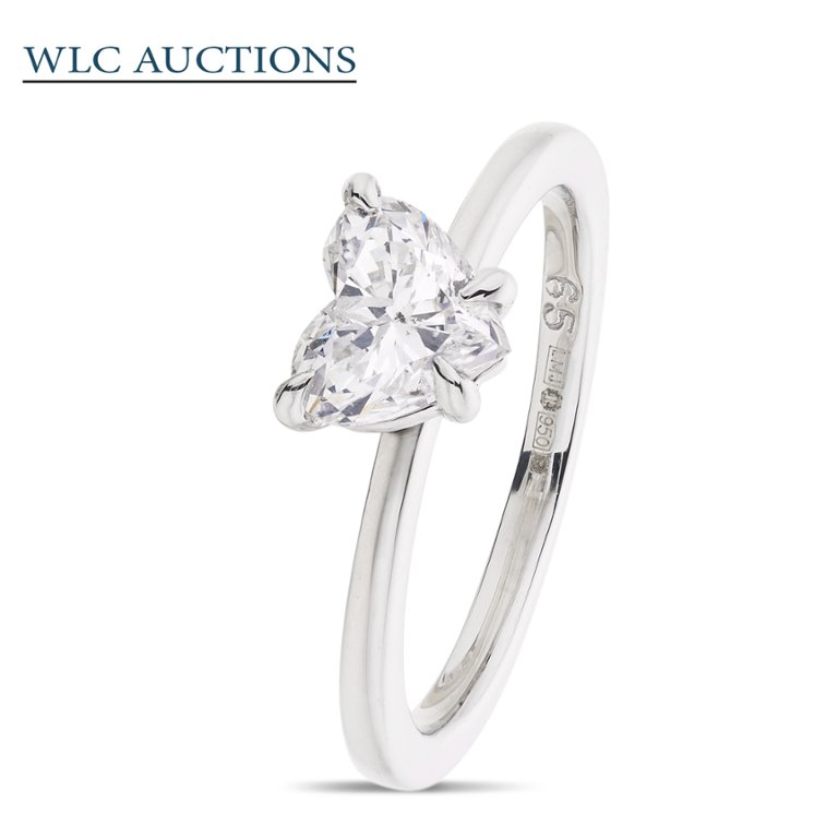 A brand-new, unused, certified-platinum natural-diamond solitaire engagement ring symbolises love and commitment. A stunning 1.02ct heart-cut diamond takes centre stage, capturing the essence of romance with its elegant and unique shape. Graded SI2 for clarity and H for colour, the diamond radiates brilliance, offering a captivating sparkle that symbolises everlasting devotion. The sleek, polished platinum setting enhances the diamond's beauty, providing a durable and timeless foundation that complements its exceptional fire and elegance. Weighing 4.40 grams.