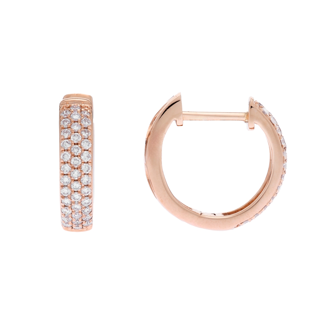 A brand new, unused, certified pair of natural diamond hooped earrings, set with three rows of brilliant cut diamonds, set in 18ct rose gold.