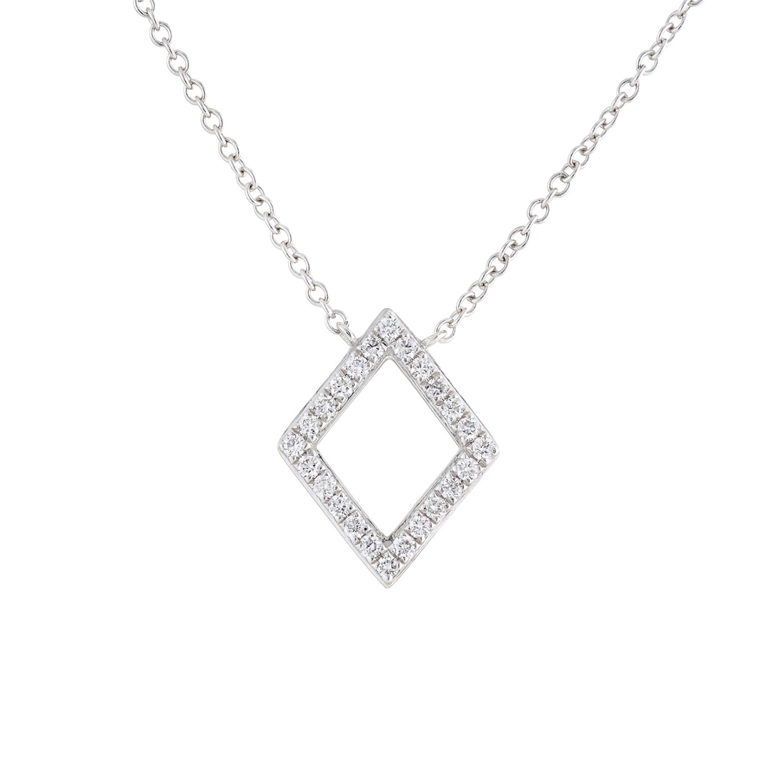 A brand-new, unused, certified natural diamond lozenge-shaped cluster pendant, set with a cluster of brilliant-cut diamonds, set in 18ct white gold.