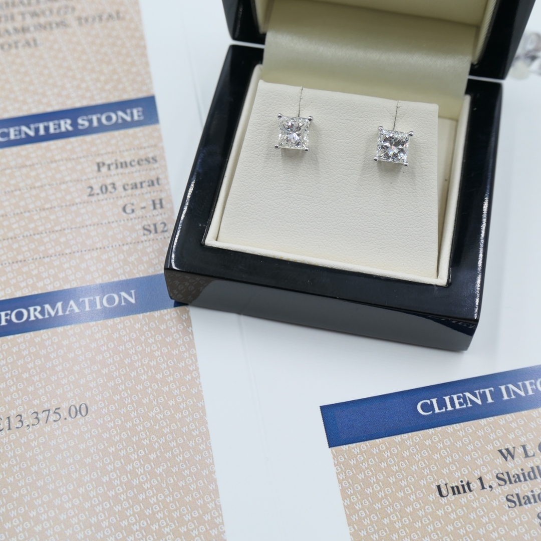 - > Natural Diamond Princess Cut Solitaire Earrings 2.03ct