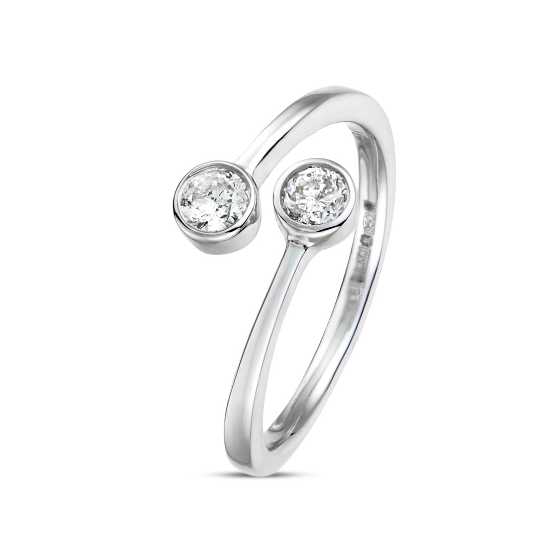 A brand-new, unused, certified natural diamond ring, this refined piece captures simplicity, brilliance, and timeless sophistication. Crafted in luxurious platinum, it features two exquisite, brilliant-cut natural diamonds, totalling 0.33 carats. Each diamond, graded G in colour and SI2 in clarity, radiates a captivating sparkle, its perfectly balanced symmetry creating a harmonious flow of light. The pairing of these two diamonds symbolises unity and connection, making this ring a graceful expression of enduring love and elegance.