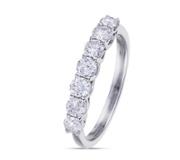 The platinum setting enhances the diamonds’ brilliance with its cool, silvery sheen, offering a sleek and contemporary backdrop that complements the stones’ natural luminosity. Renowned for its strength and purity, platinum ensures durability and a polished finish that lasts, keeping the ring's elegance intact over time. Each diamond is meticulously set with precision, ensuring both security and maximum light reflection to highlight its natural fire and beauty.