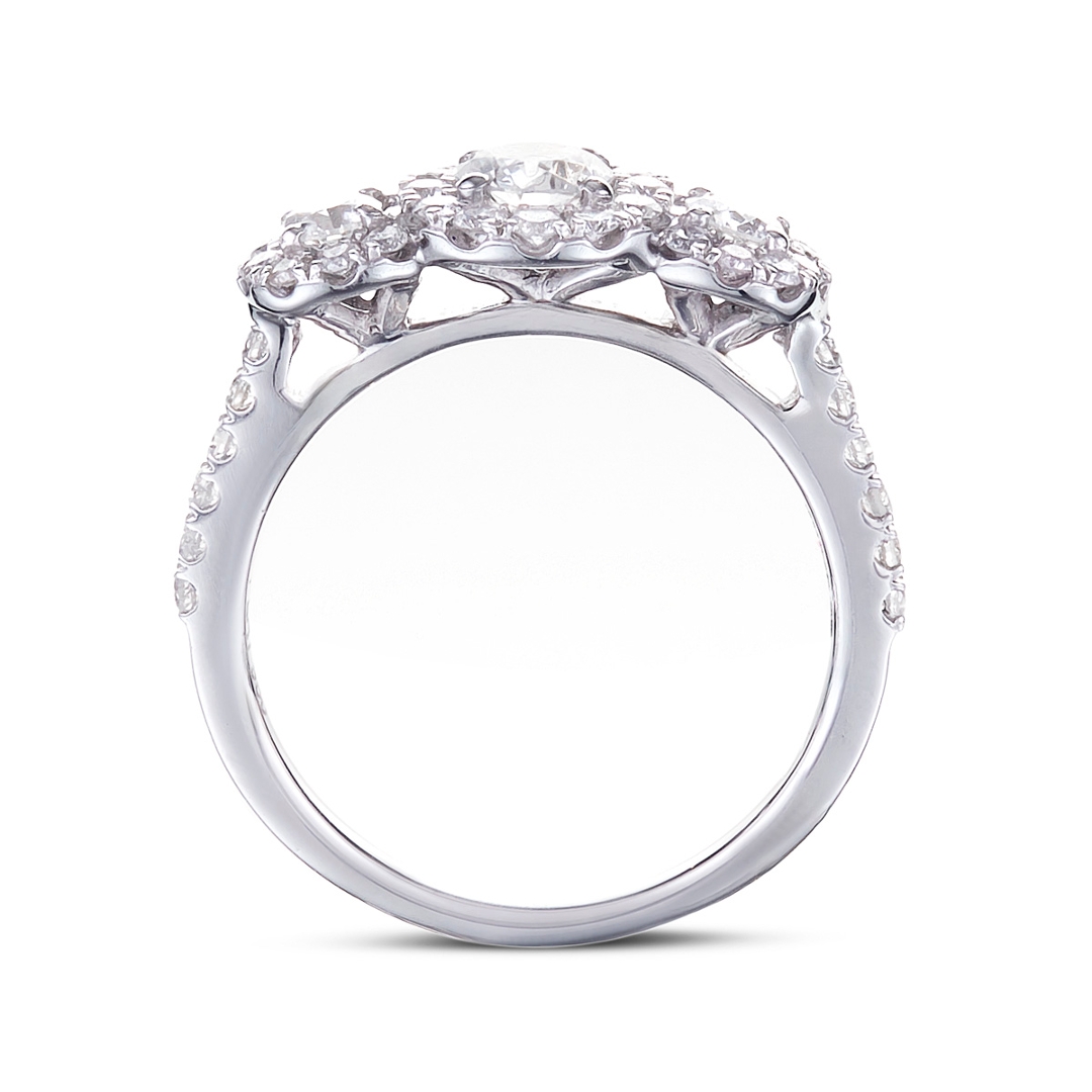 - > Natural Diamond Round Shaped Trio Cluster Ring 1.08ct