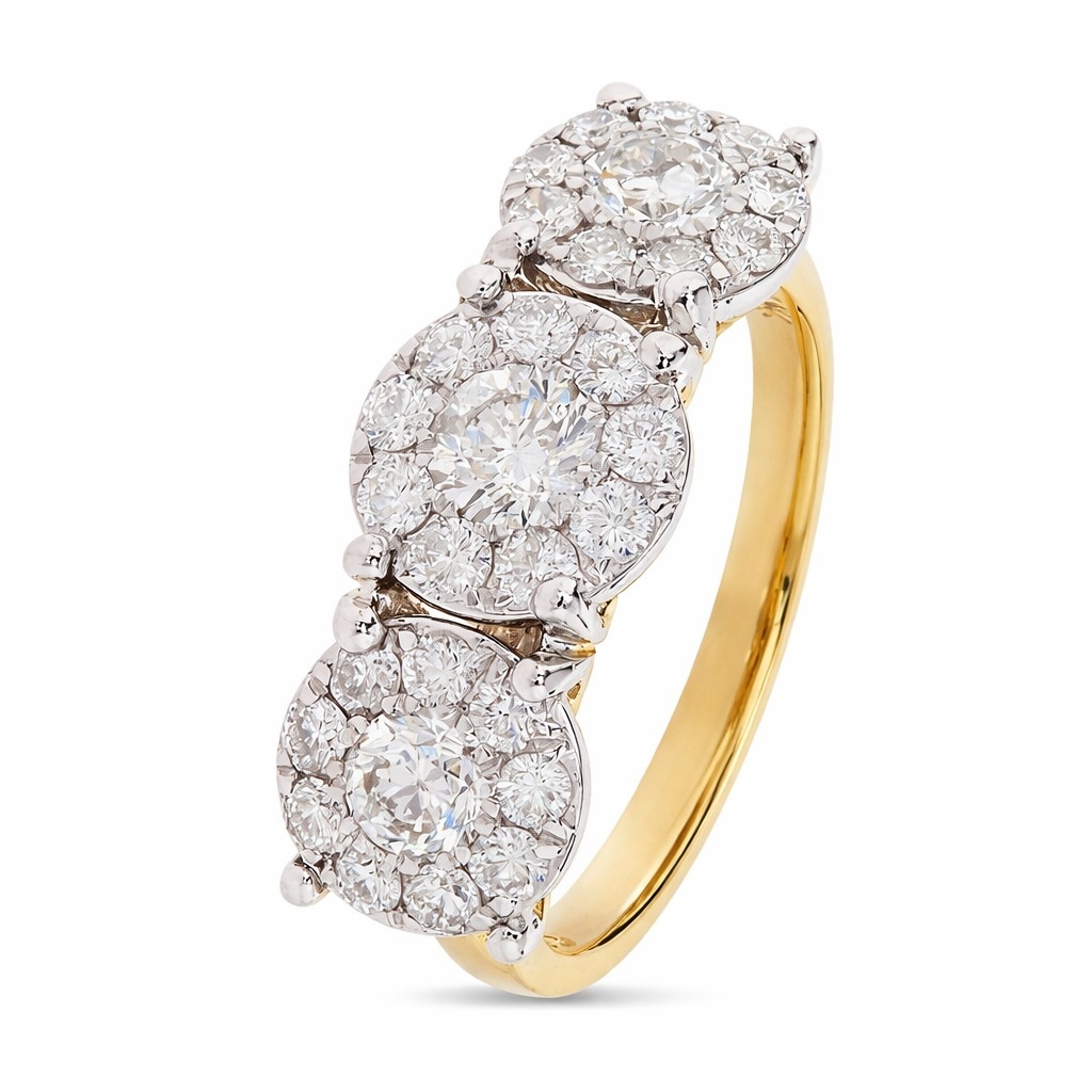 A brand-new, unused, certified natural diamond round-shaped trio cluster ring, set with a cluster of brilliant-cut diamonds at the centre, set in 18ct yellow & white gold.