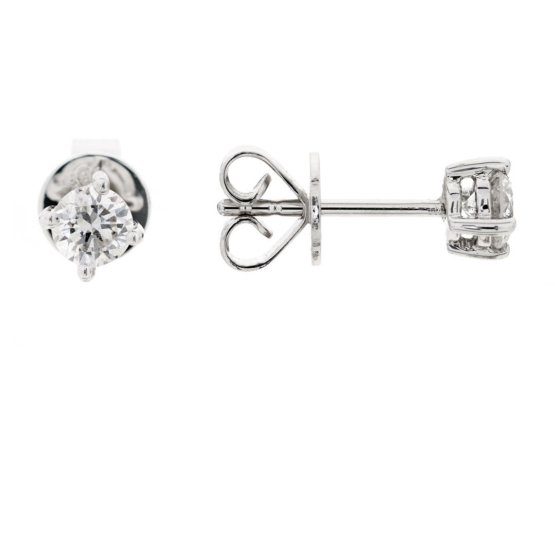 A brand-new, unused, certified pair of natural diamond solitaire earrings, with two brilliant-cut diamonds, set in 18ct white gold.