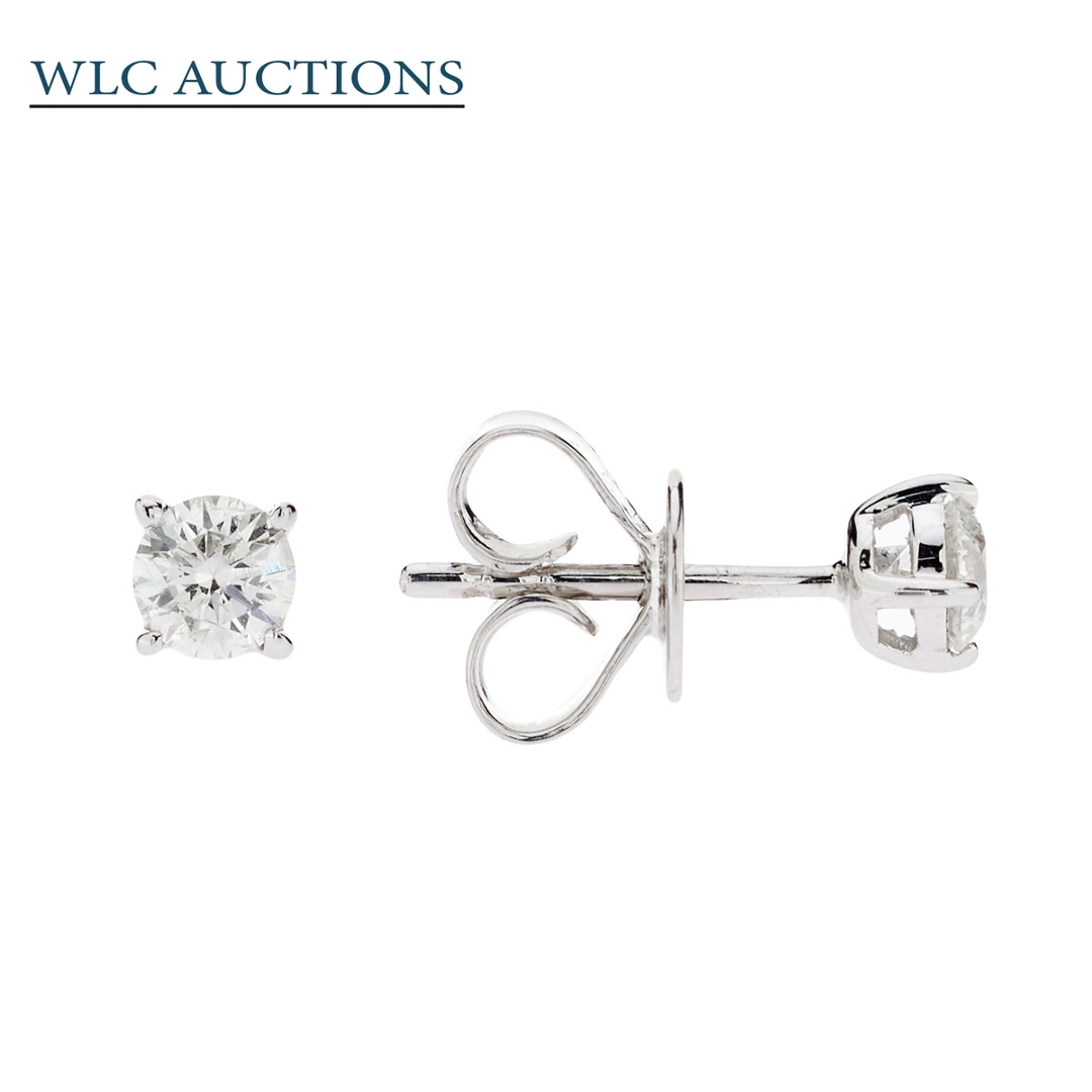 A brand-new, unused, certified pair of natural diamond solitaire earrings, with two brilliant-cut diamonds, set in 9ct white gold.