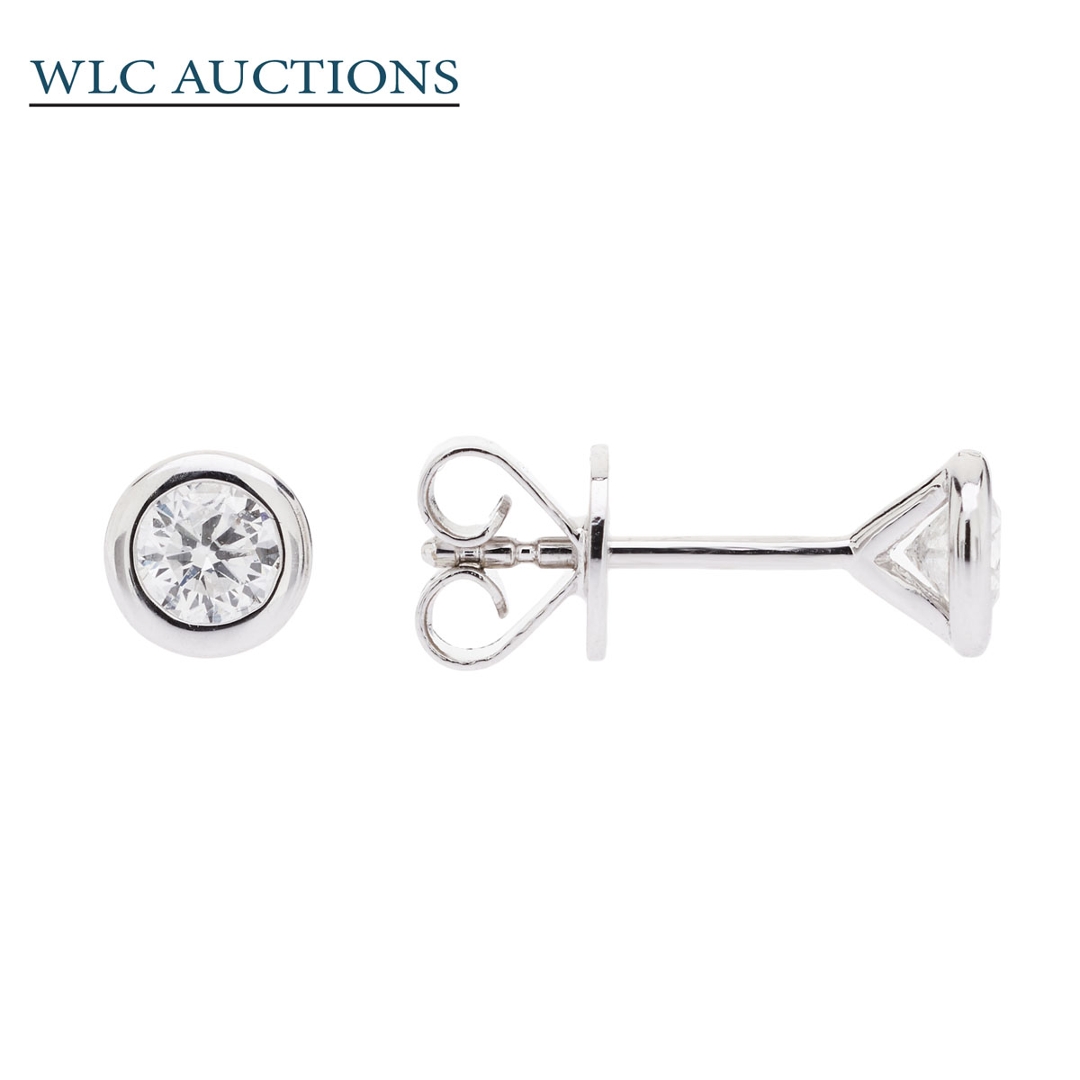 A brand-new, unused, certified pair of natural diamond solitaire earrings, with two brilliant-cut diamonds, set in 9ct white gold.