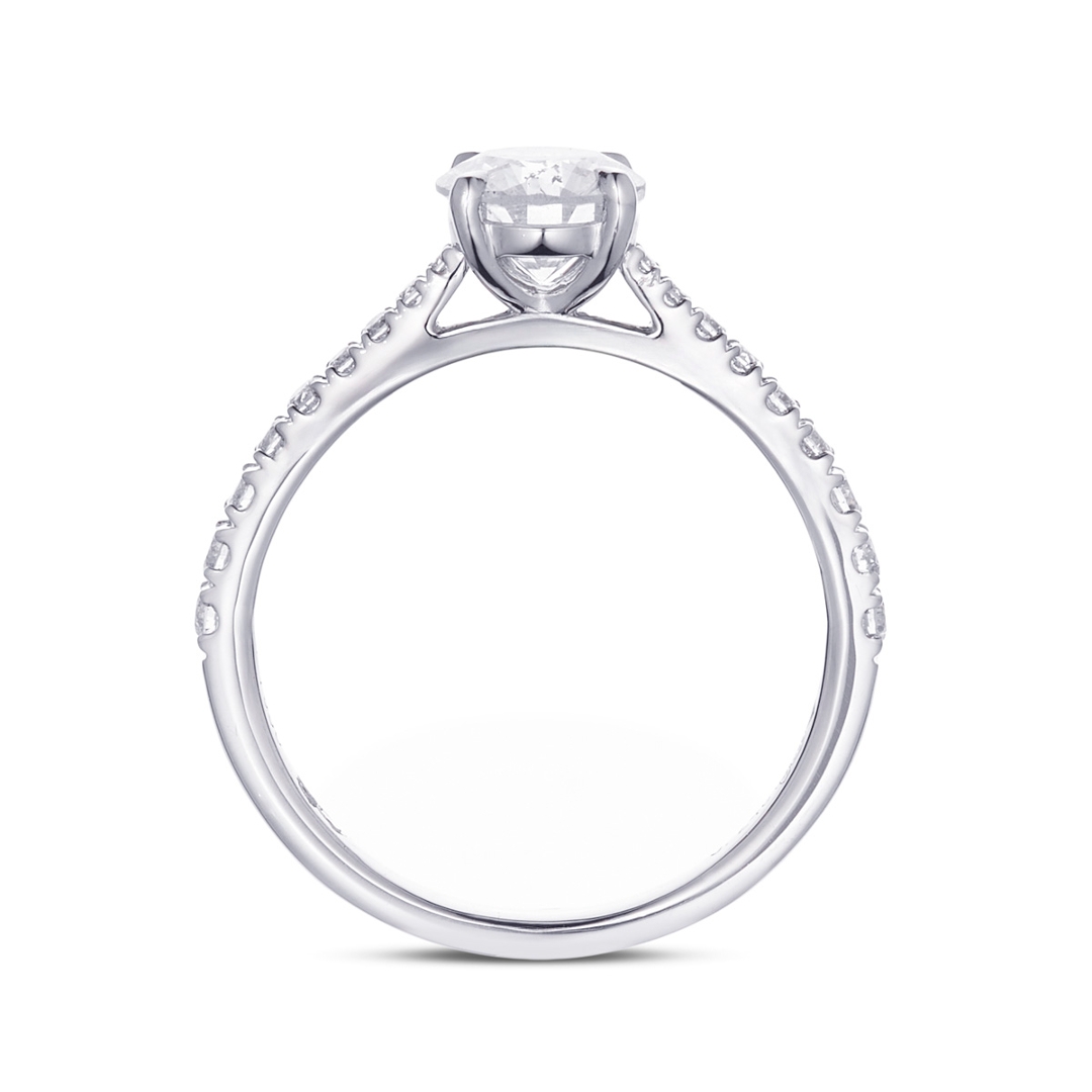 Natural diamonds continue to command enduring admiration due to their rarity and geological origin, formed over billions of years beneath the earth’s surface. The combination of a near one-carat centre stone with diamond-set shoulders delivers both visual impact and timeless desirability, ensuring lasting appeal in the engagement market.