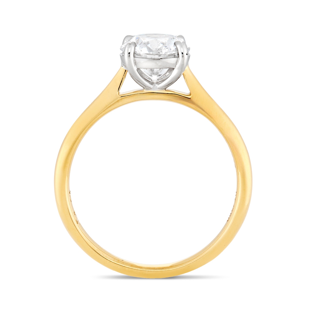 A brand-new, unused, certified natural diamond solitaire engagement ring, set with one brilliant cut diamond at the centre, set in platinum & 18ct yellow gold.