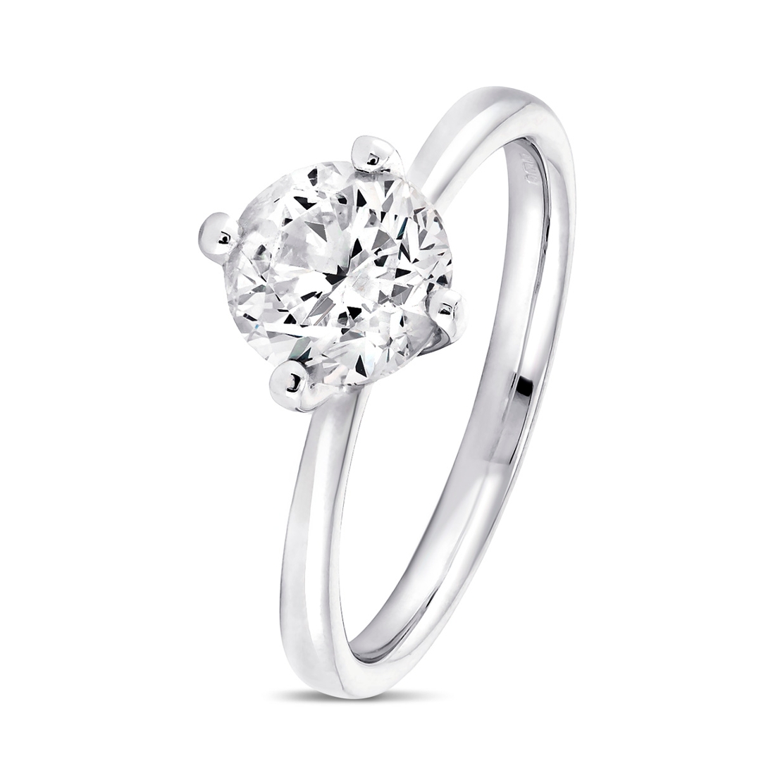 A brand-new, unused, certified 18ct white gold natural diamond solitaire engagement ring set with one brilliant-cut diamond at the centre.