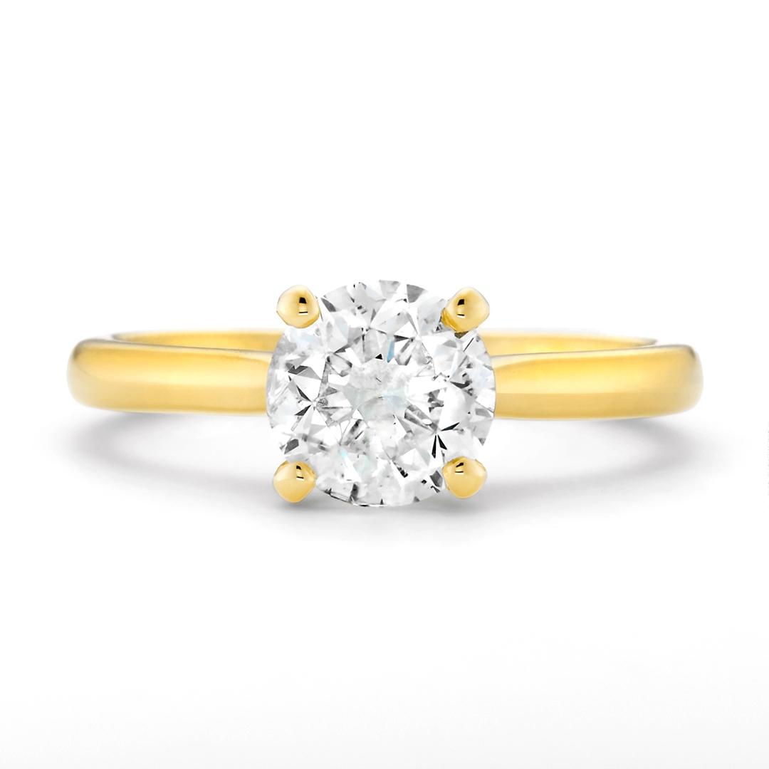 Crafted in luxurious 18ct yellow gold, the warm tone of the setting perfectly complements the diamond’s crisp luminosity, offering a refined contrast that enhances its radiant charm. The smooth, polished band adds to its sophistication while providing comfort and durability. Each detail of this ring has been meticulously executed—from the precision of the setting to the balance of proportions—resulting in a truly timeless design.