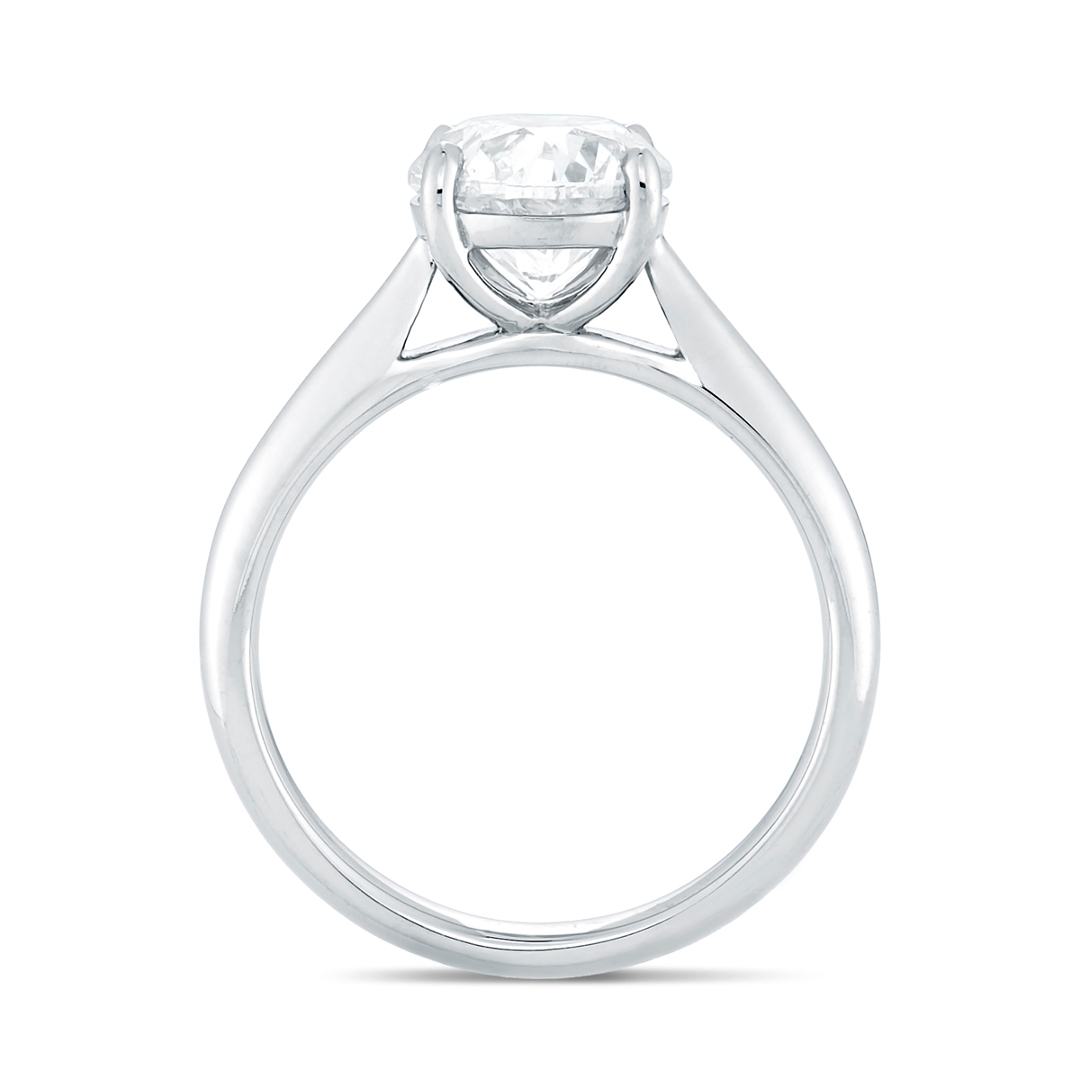 A brand-new, unused, certified natural diamond solitaire engagement ring, set with one brilliant cut diamond at the centre, set in platinum.