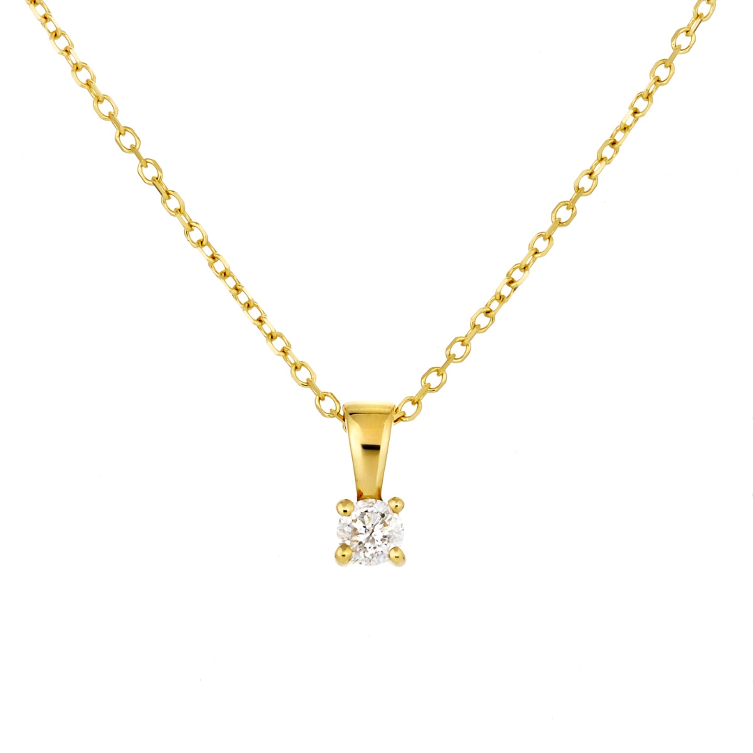 A brand-new, unused, certified natural diamond solitaire pendant, set with one brilliant cut diamond, set in 18ct yellow gold.
