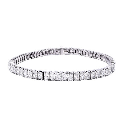 A brand-new, unused certified 18ct white gold natural diamond tennis bracelet, crafted to embody timeless sophistication and refined luxury. Set with an impressive 10.16ct of radiant-cut natural diamonds, this bracelet captures the perfect harmony of brilliance and precision. Each diamond has been meticulously matched for cut, clarity, and colour, forming an unbroken line of light that shimmers with effortless beauty. The radiant cut combines the geometry of an emerald cut with the sparkle of a brilliant cut, creating a captivating dance of fire and depth with every movement.