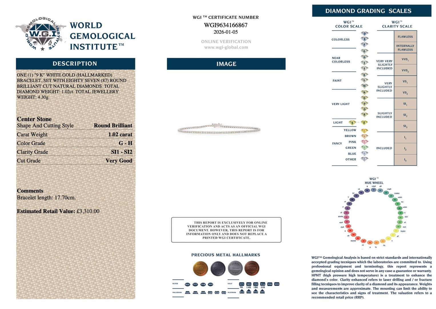 Set in durable 9ct white gold, this bracelet offers understated elegance and practicality. Accompanied by a professional valuation of £3,310.00, it represents a considered acquisition that balances refined aesthetics with genuine investment potential, appealing to discerning buyers seeking lasting value, confidence, and enduring style in fine jewellery.