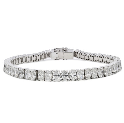 A brand-new, unused certified platinum natural diamond tennis bracelet, crafted to embody enduring beauty and refinement. This exquisite piece is set with 12.02ct of oval-cut natural diamonds, each one carefully chosen for its brilliance, balance, and precision. The elongated facets of the oval cut create an exceptional play of light, giving the bracelet a graceful, fluid sparkle that moves elegantly with the wrist. Every diamond is perfectly aligned within the platinum setting, producing a seamless line of radiance that reflects exceptional craftsmanship and artistry.
