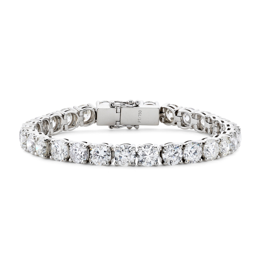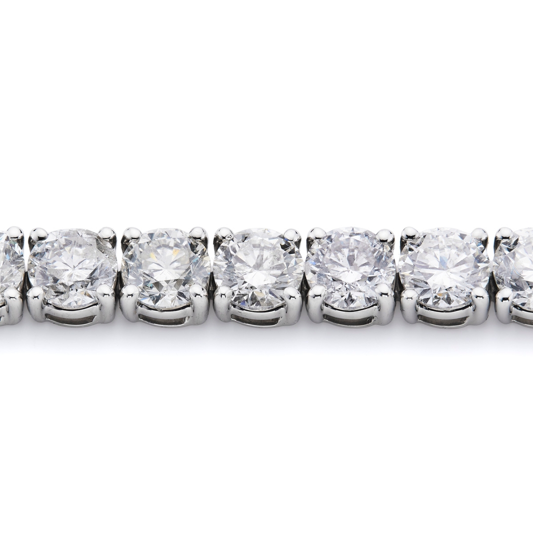 A brand new, unused certified natural diamond tennis bracelet that epitomises opulence, brilliance and enduring prestige. This extraordinary piece is set with an exceptional cluster of brilliant-cut natural diamonds, totalling an impressive 26.21ct, each meticulously matched for fire, clarity and perfect symmetry. The diamonds are graded G–H in colour and SI1–SI2 in clarity, displaying a captivating radiance that catches the light with every movement. Expertly crafted in a blend of platinum and 18ct white gold, the bracelet combines the strength and purity of platinum with the sleek, luminous finish of white gold, ensuring both durability and refined elegance. Weighing 36.77 grams and professionally valued at £97,500, this piece stands as a true masterpiece of craftsmanship and luxury design.