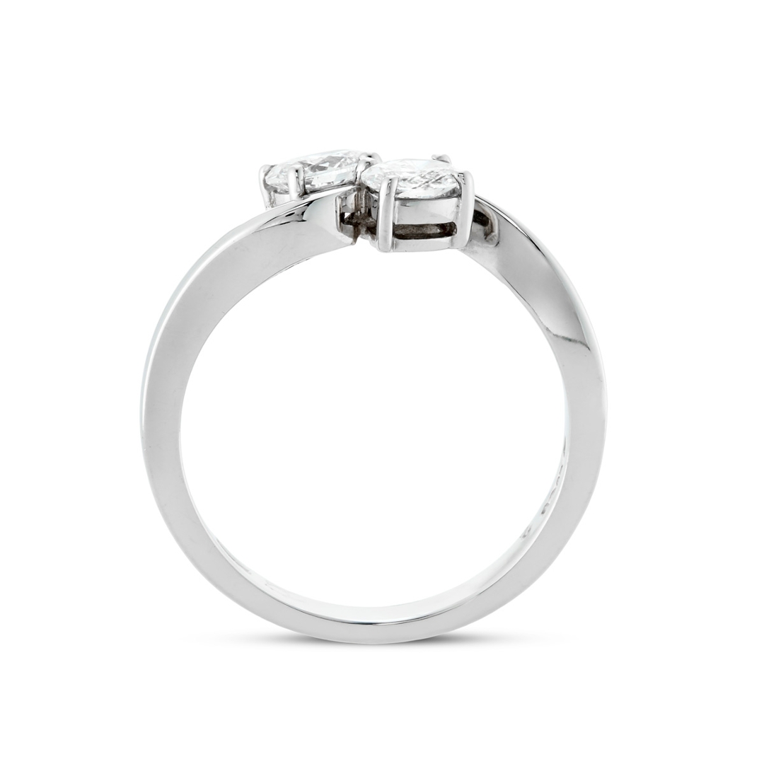 A brand-new, unused, certified natural diamond two-stone cluster ring, with two oval-cut diamonds, set in platinum.