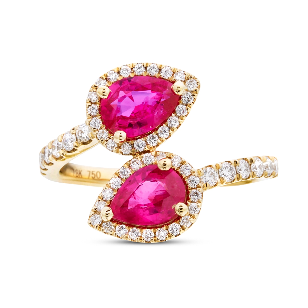 - > Natural Double Ruby 1.31ct & Diamond 0.38ct Pear Shaped Cluster Ring