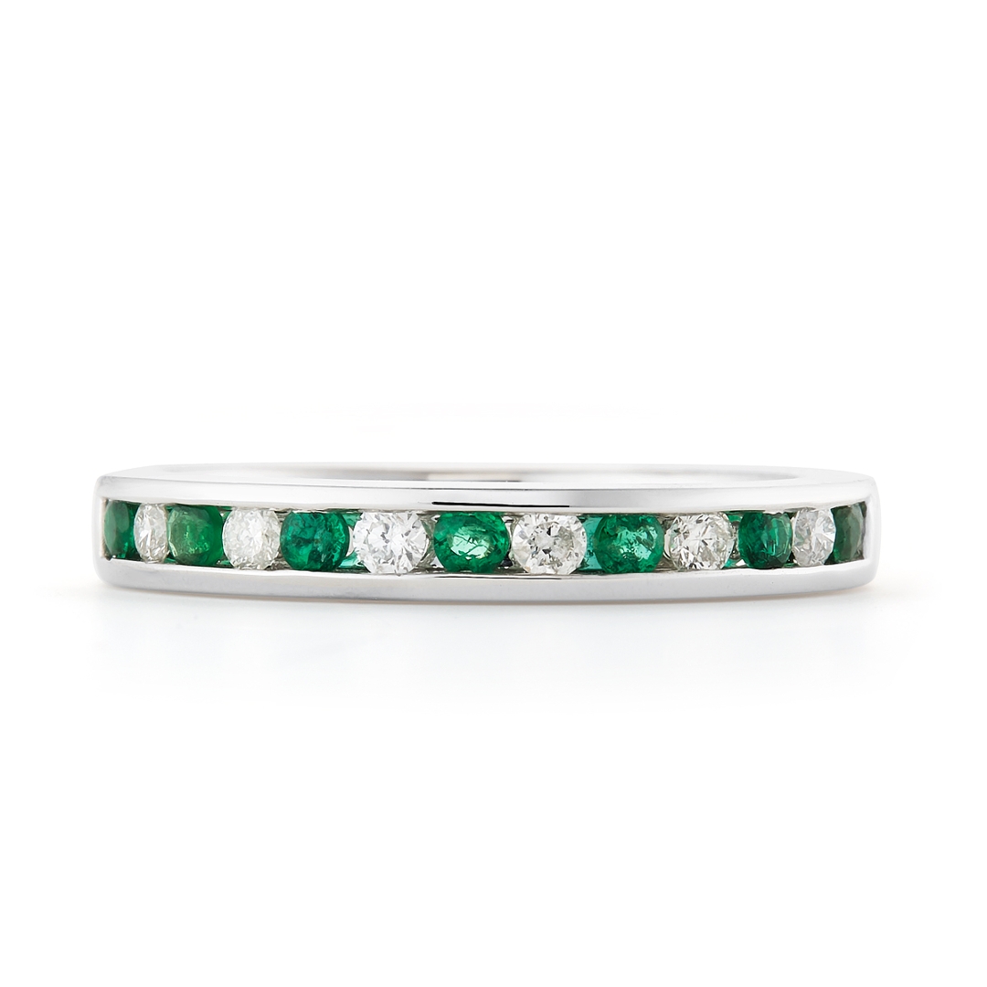 - > Natural Emerald 0.22ct & Diamond 0.18ct Eternity Ring
