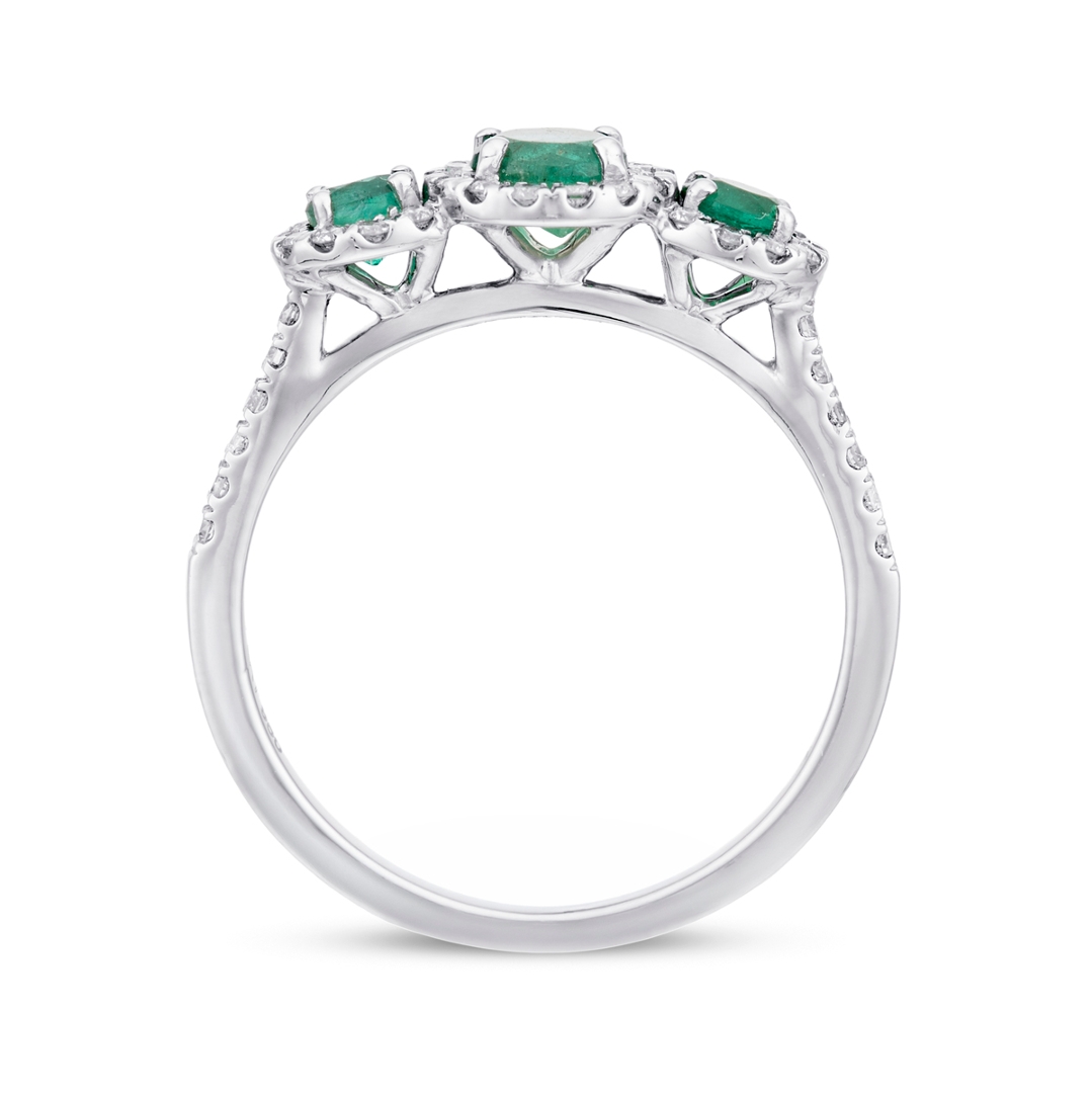 - > Natural Emerald 0.67ct & Diamond 0.29ct Round Shaped Trio Cluster Ring