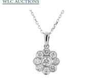The sleek 18ct white gold setting provides a cool, polished backdrop that amplifies the diamonds' sparkle while maintaining a sophisticated, contemporary look. Each gemstone has been meticulously cut and precisely set to ensure perfect balance, symmetry, and enduring beauty. The pendant’s design combines classic elegance with modern refinement, making it an ideal choice for both everyday sophistication and special occasions.