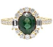 Natural Emerald 0.79ct & Diamond 1.12ct Emerald Shaped Cluster Ring