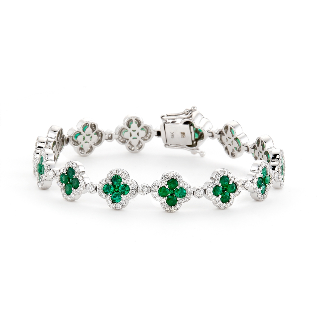 - > Natural Emerald 4.51ct & Diamond 2.57ct Cluster Bracelet