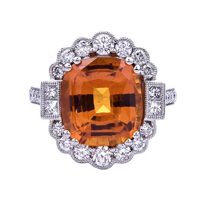 Set in platinum for exceptional durability and a refined finish, the ring also presents notable investment potential. Natural diamonds have historically shown resilience and stability in the market, and when paired with a substantial 5.95ct hessonite garnet, the result is a compelling combination of beauty and future value. This is an elegant, high-quality piece ready to attract confident bidders.