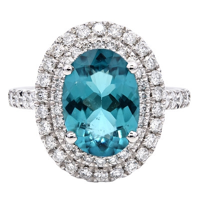 - > Natural Lagoon Tourmaline 2.43ct & Diamond 0.79ct Oval Shaped Cluster Ring