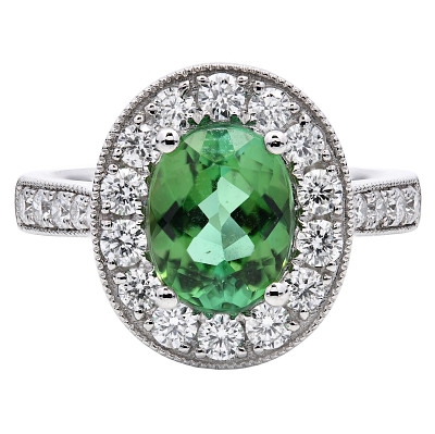 - > Natural Mint Tourmaline 1.66ct & Diamond 0.66ct Oval Shaped Cluster Ring