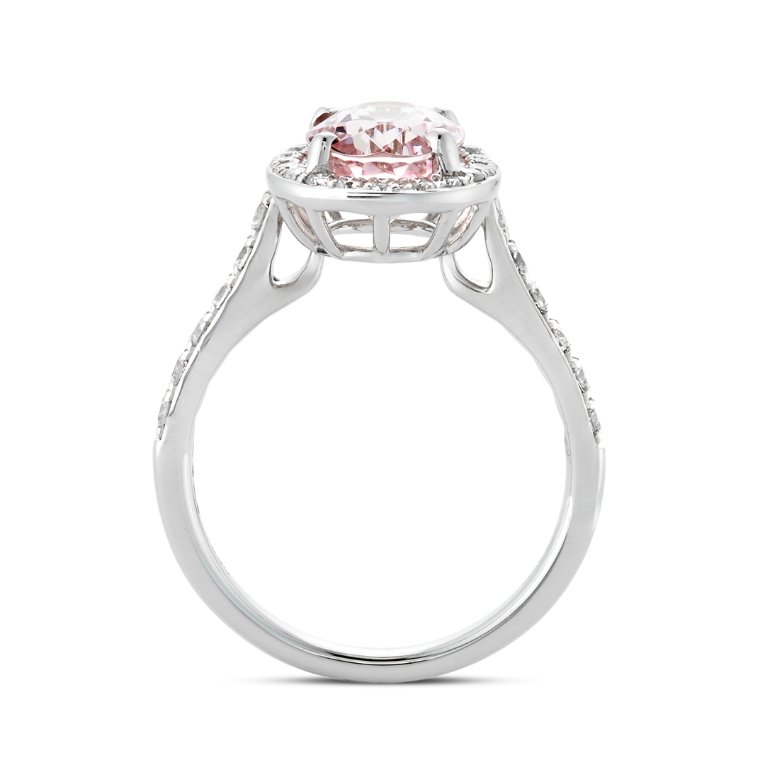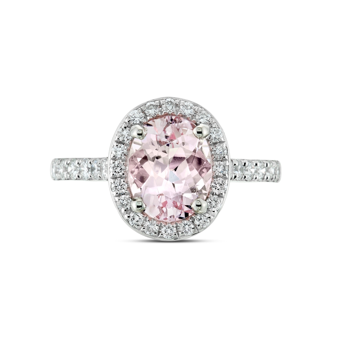 - > Natural Morganite 1.92ct & Diamond 0.53ct Oval Shaped Cluster Ring