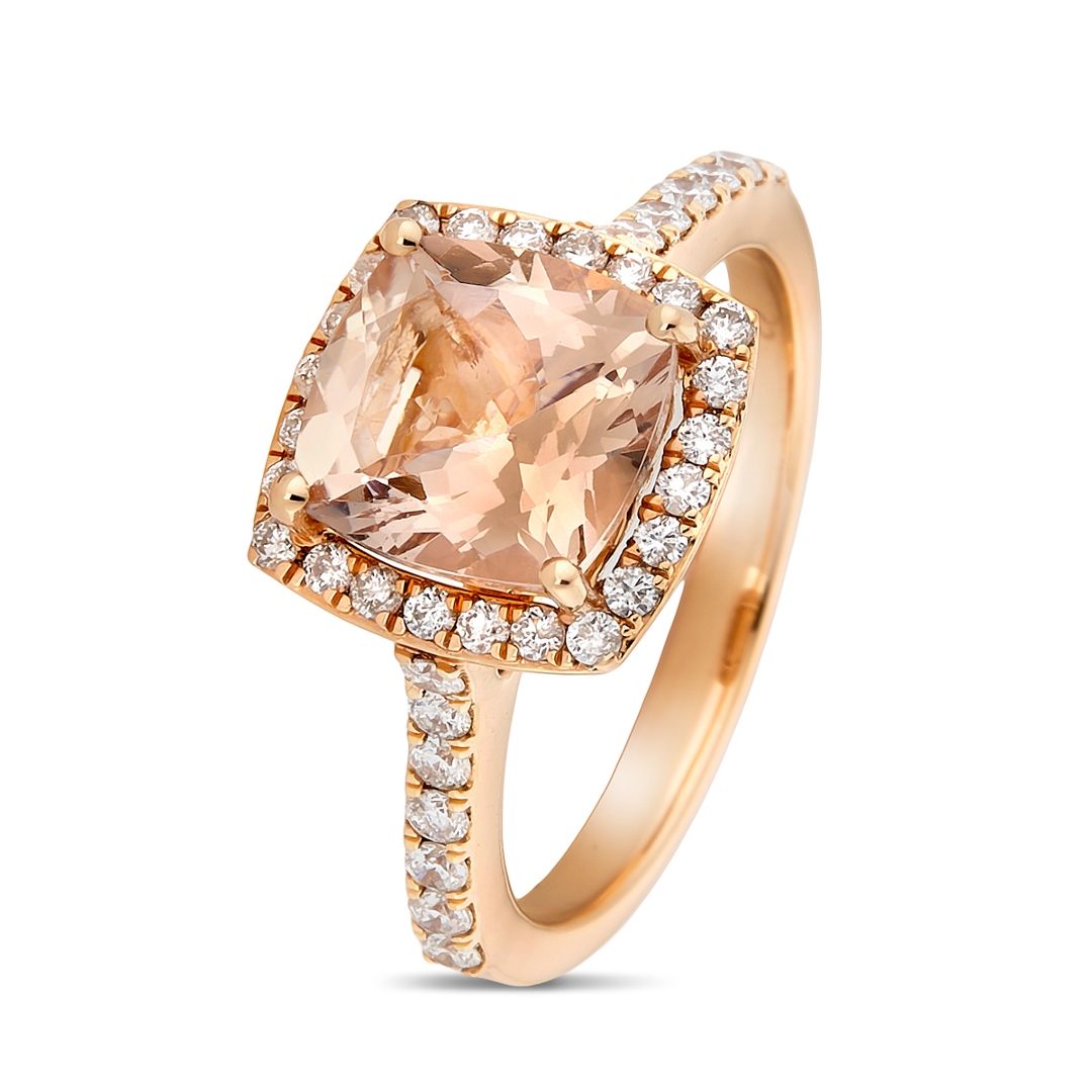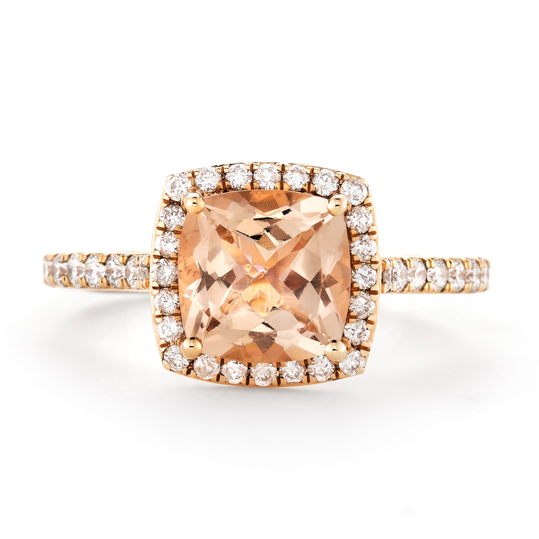 - > Natural Morganite 2.14ct & Diamond 0.45ct Cushion Shaped Cluster Ring