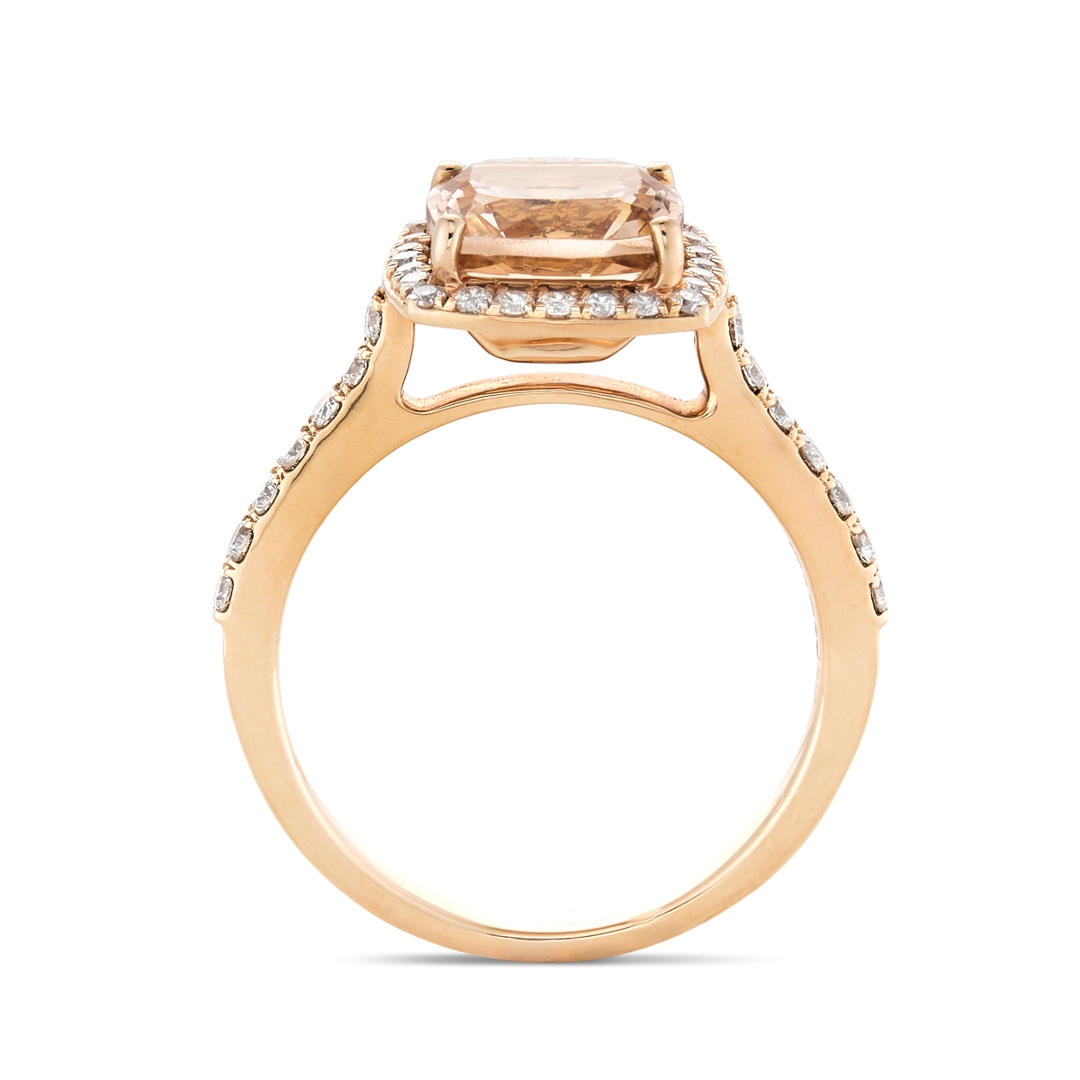 This exquisite ring beautifully blends the gentle allure of morganite with the everlasting sparkle of natural diamonds — a radiant statement of elegance, grace and enduring value.