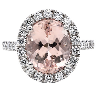 - > Natural Morganite 2.69ct & Diamond 0.67ct Oval Shaped Cluster Ring
