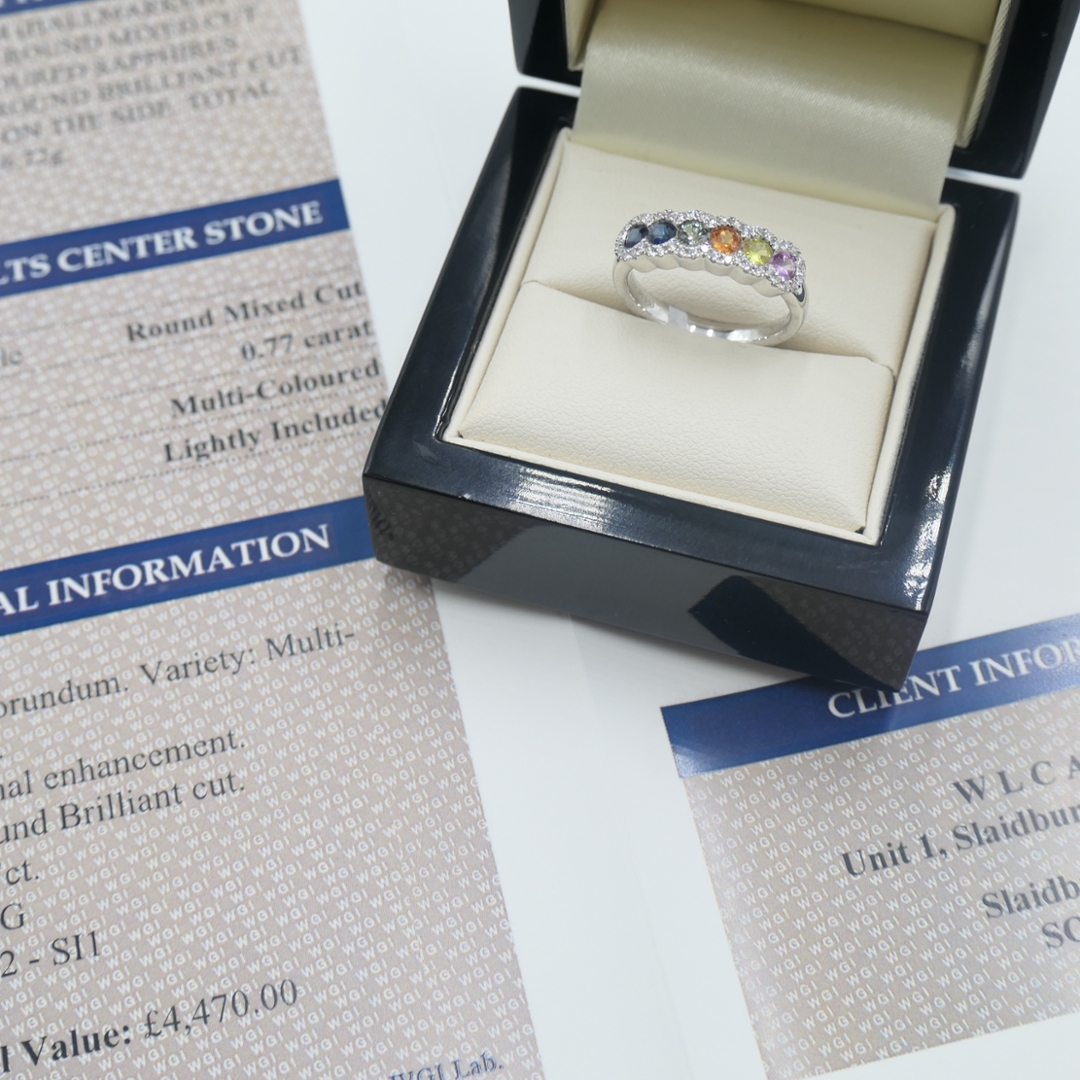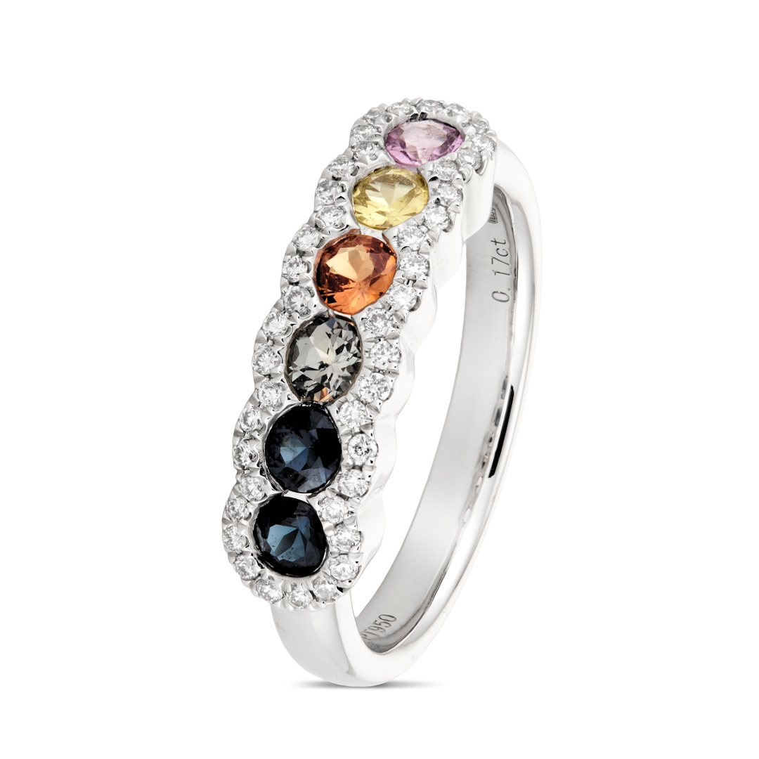 - > Natural Multi Coloured Sapphire 0.77ct & Diamond 0.17ct Eternity Ring