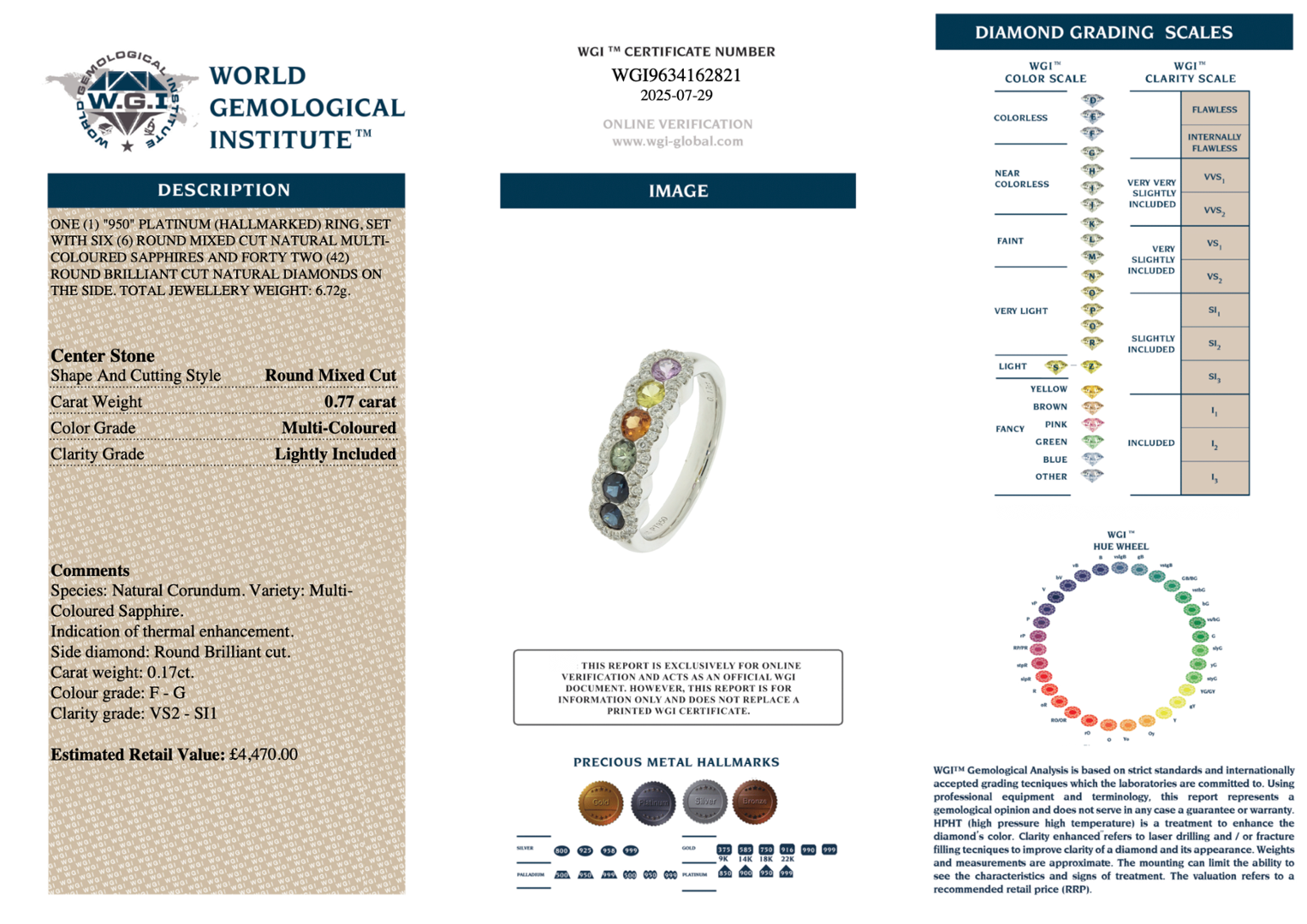 Natural diamonds are revered not only for their unmatched beauty but also for their rarity and enduring value. They have long been regarded as among the most secure and tangible forms of investment, with high-quality stones often maintaining or appreciating due to their limited availability and sustained global demand. In this ring, the diamonds add both brilliance and intrinsic value, making it a treasured piece for a lifetime. Supplied with certification and a professional valuation of £4,470.00, it offers an exquisite balance of colour, craftsmanship and the enduring prestige that only natural diamonds can provide.