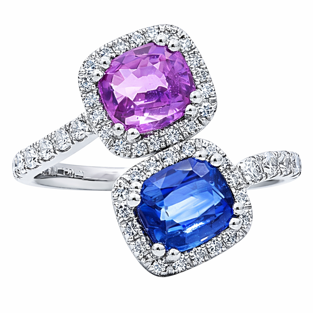 - > Natural Multi Sapphire 2.10ct & Diamond 0.43ct Toi et Moi Ring