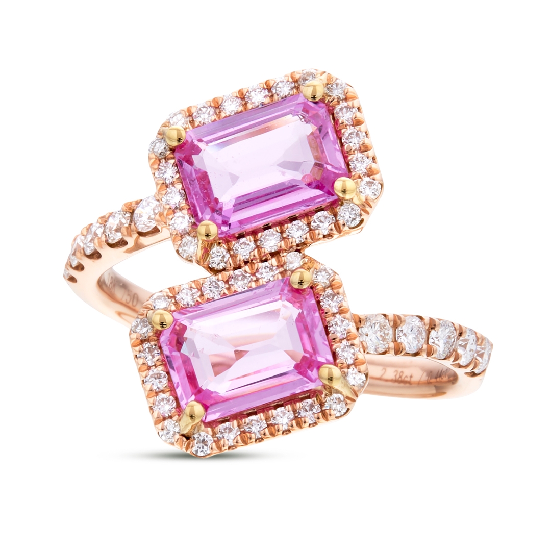 - > Natural Pink Sapphire 2.38ct & Diamond 0.44ct Emerald Shaped Toi et Moi Ring