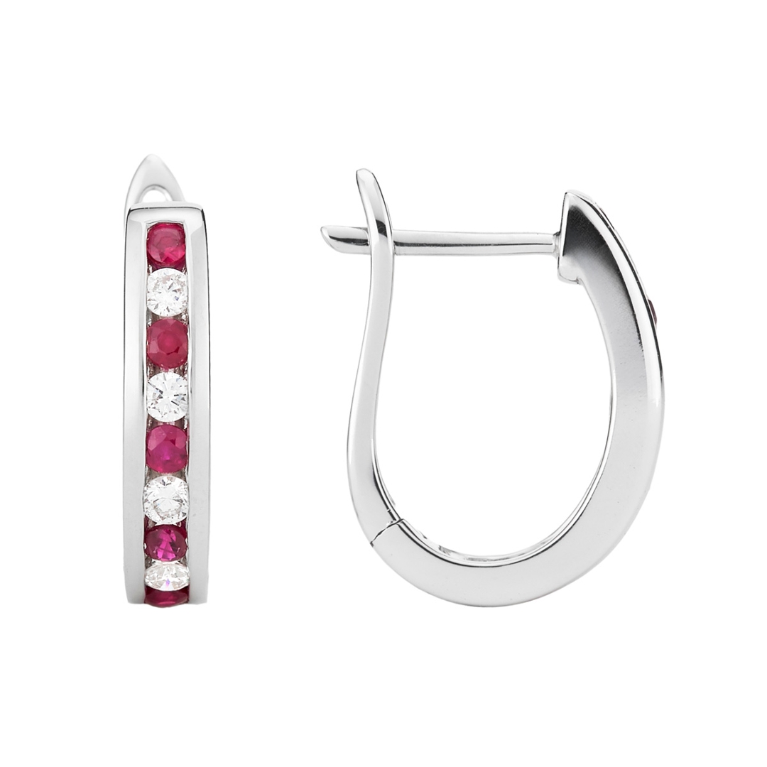 Crafted in luxurious 18ct white gold, the hoops feature a sleek, polished finish that enhances the contrast between the diamonds’ icy brilliance and the rubies' rich warmth. The rounded silhouette hugs the ear comfortably, making them ideal for daytime elegance and evening sophistication. The alternating pattern of rubies and diamonds creates a striking visual rhythm, adding glamour to every look.