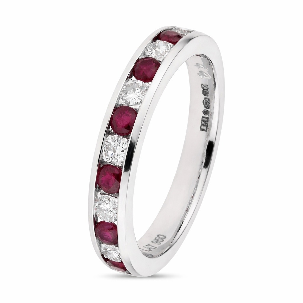 Valued at £2,700.00, this diamond-and-ruby eternity ring represents a significant investment in luxury and craftsmanship. The valuation reflects the quality of the materials and the meticulous attention to detail in their creation. Whether worn as a symbol of eternal love or a stunning accessory for special occasions, this platinum eternity ring will surely be treasured for its timeless beauty and elegance.