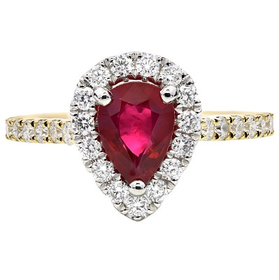 - > Natural Ruby 1.04ct & Diamond 0.45ct Pear Shaped Cluster Ring