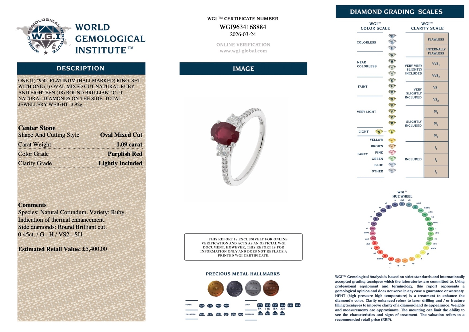 With a total weight of 3.92 grams, the ring offers a comfortable yet substantial feel, supported by the durability and prestige of platinum. Backed by a valuation of £5,400, this piece offers an exceptional opportunity to acquire a striking, well-balanced ring that combines elegance, collectability, and strong investment potential.