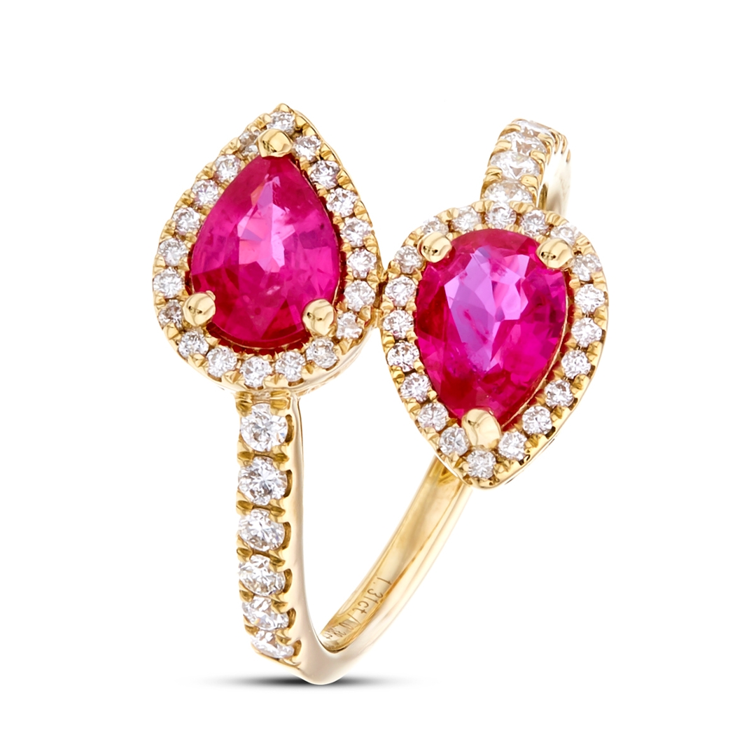- > Natural Ruby 1.31ct & Diamond 0.38ct Pear Shaped Toi et Moi Ring