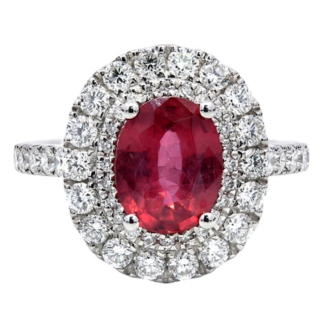 - > Natural Ruby 1.60ct & Diamond 0.96ct Oval Shaped Cluster Ring
