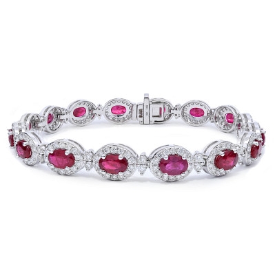 - > Natural Ruby 8.24ct & Diamond 3.32ct Oval Shaped Cluster Bracelet