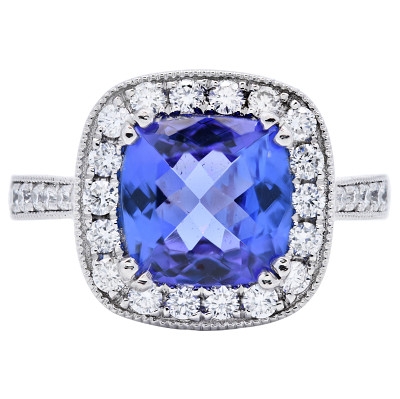 - > Natural Tanzanite 2.06ct & Diamond 0.47ct Cushion Shaped Cluster Ring